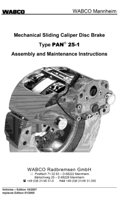 Mechanical Sliding Caliper Disk Brake Type PAN 25-1 Assembly and Maintenance Instructions