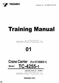 Заводская инструкция по ремонту крана Тадано - Tadano Crane Carrier Chassis TC-4255-1 - Service Manual содержит подробную информацию о сборке и разборке агрегатов, процедур диагностики, электрические схемы, моменты затяжек и др.