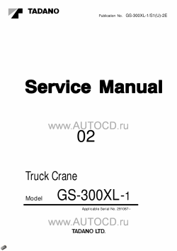 Заводская инструкция по ремонту крана Тадано - Tadano Truck Crane GS-300XL-1 содержит подробную информацию о сборке и разборке агрегатов, процедур диагностики, электрические схемы, моменты затяжек и др.