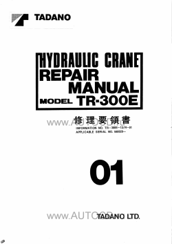 Заводская инструкция по ремонту крана Тадано - Tadano Hydraulic Crane TR-300E-1 содержит подробную информацию о сборке и разборке агрегатов, процедур диагностики, электрические схемы, моменты затяжек и др.