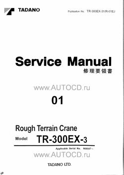 Заводская инструкция по ремонту крана Тадано - Tadano Hydraulic Crane TR-300EX-3 содержит подробную информацию о сборке и разборке агрегатов, процедур диагностики, электрические схемы, моменты затяжек и др.