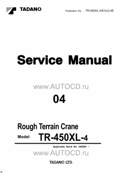 Заводская инструкция по ремонту крана Тадано - Tadano Hydraulic Crane TR-450XL-4 содержит подробную информацию о сборке и разборке агрегатов, процедур диагностики, электрические схемы, моменты затяжек и др.