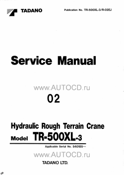 Заводская инструкция по ремонту крана Тадано - Tadano Hydraulic Crane TR-500XL-3 содержит подробную информацию о сборке и разборке агрегатов, процедур диагностики, электрические схемы, моменты затяжек и др.